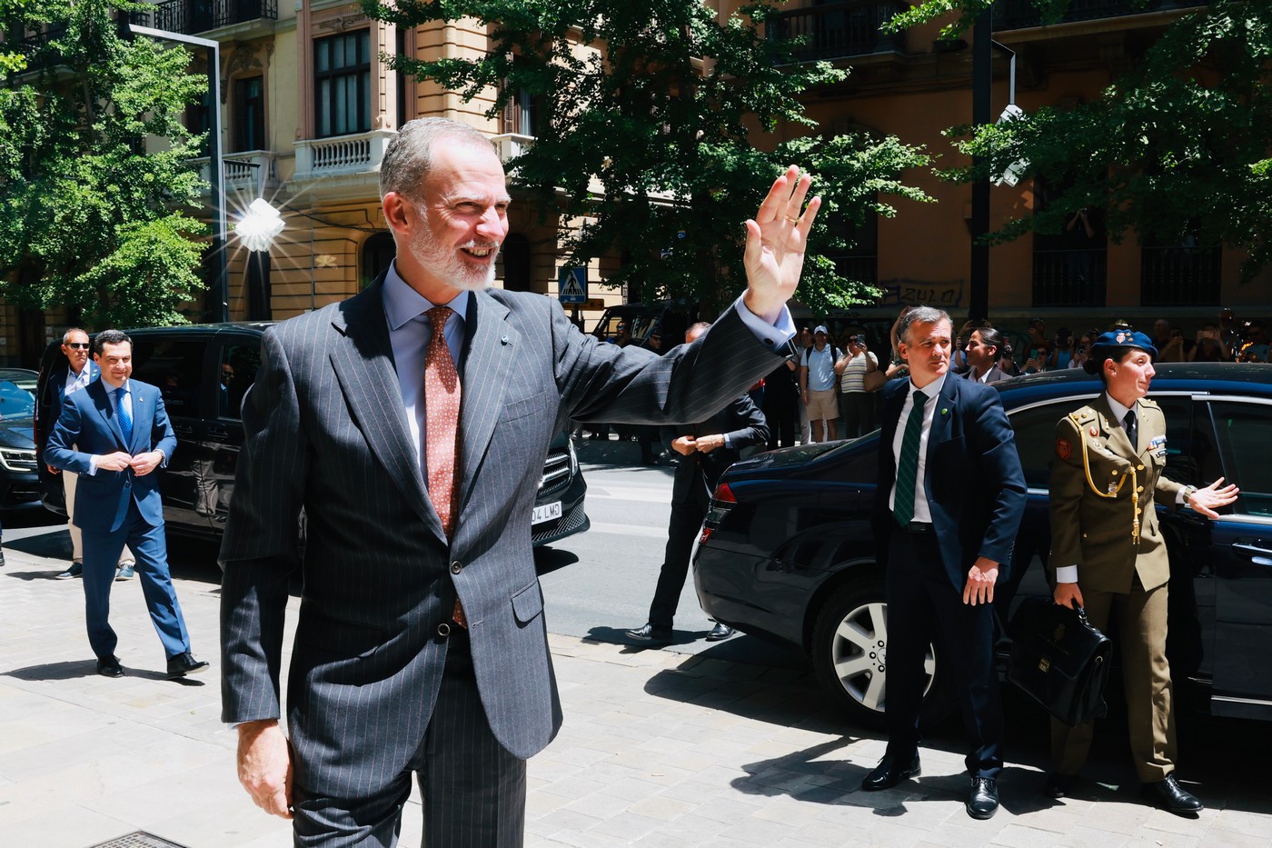 El Rey estuvo acompañado por el presidente del Consejo General del Poder Judicial por suplencia, Vicente Guilarte; el ministro de Presidencia, Justicia y Relaciones con las Cortes, Félix Bolaños; el alcalde de Madrid, José Luis Martínez-Almeida; el expresidente del Gobierno, Mariano Rajoy; el presidente en funciones del Tribunal Supremo, Francisco Marín Castán; el fiscal general del Estado, Álvaro García Ortiz; el secretario de Estado de Justicia, Manuel Olmedo; el vicedecano del Colegio de Registradores de España, José Miguel Tabarés; presidentes de colegios profesionales; decanatos autonómicos y territoriales de los registradores de España; comisión del colegio de registradores de España y asistentes.