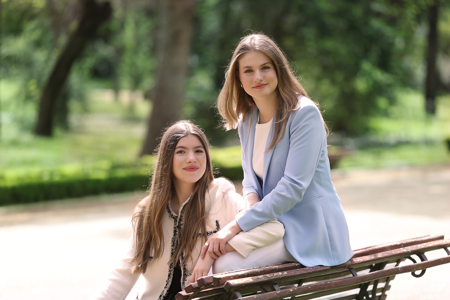Los jardines del Palacio Real de Madrid, han sido el escenario de este posado familiar en el que también han participado la Princesa de Asturias, doña Leonor y la Infanta, doña Sofía.