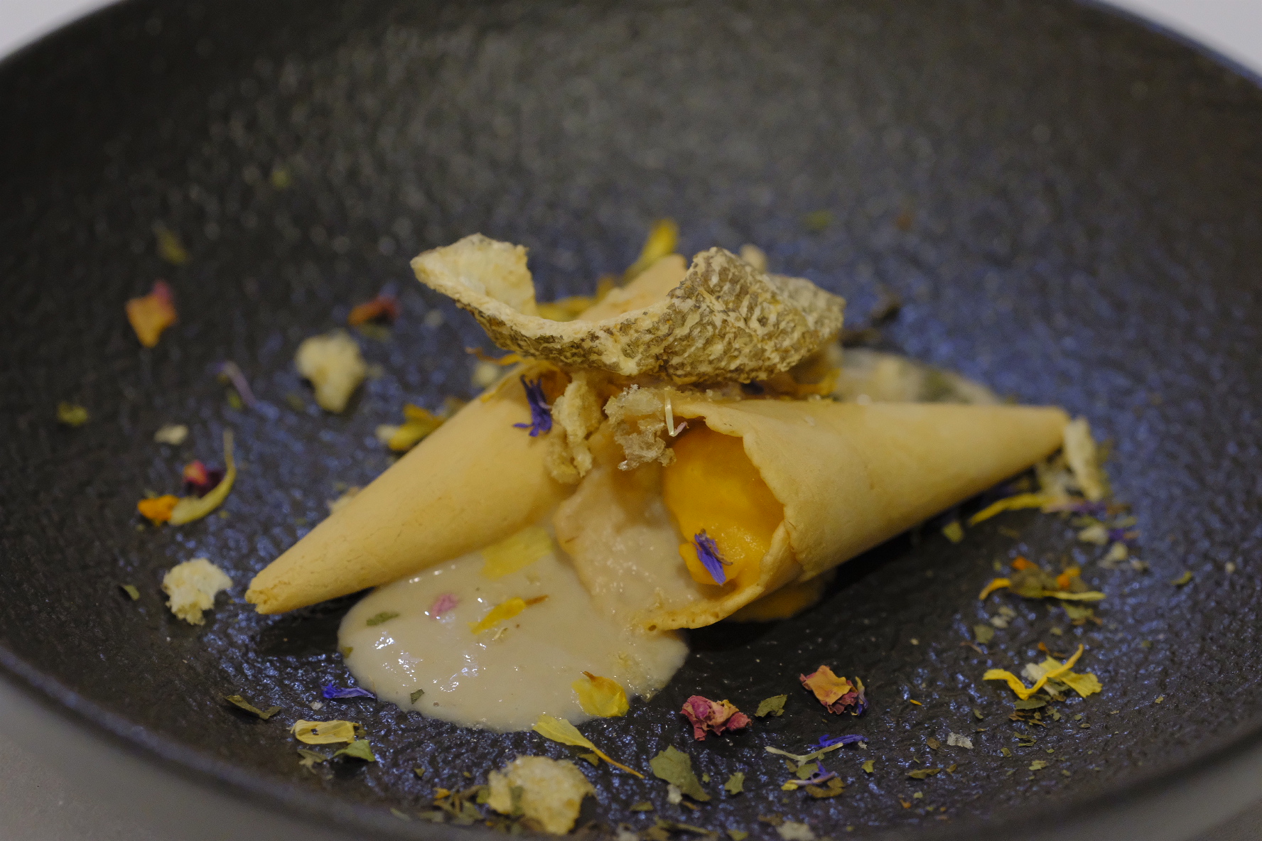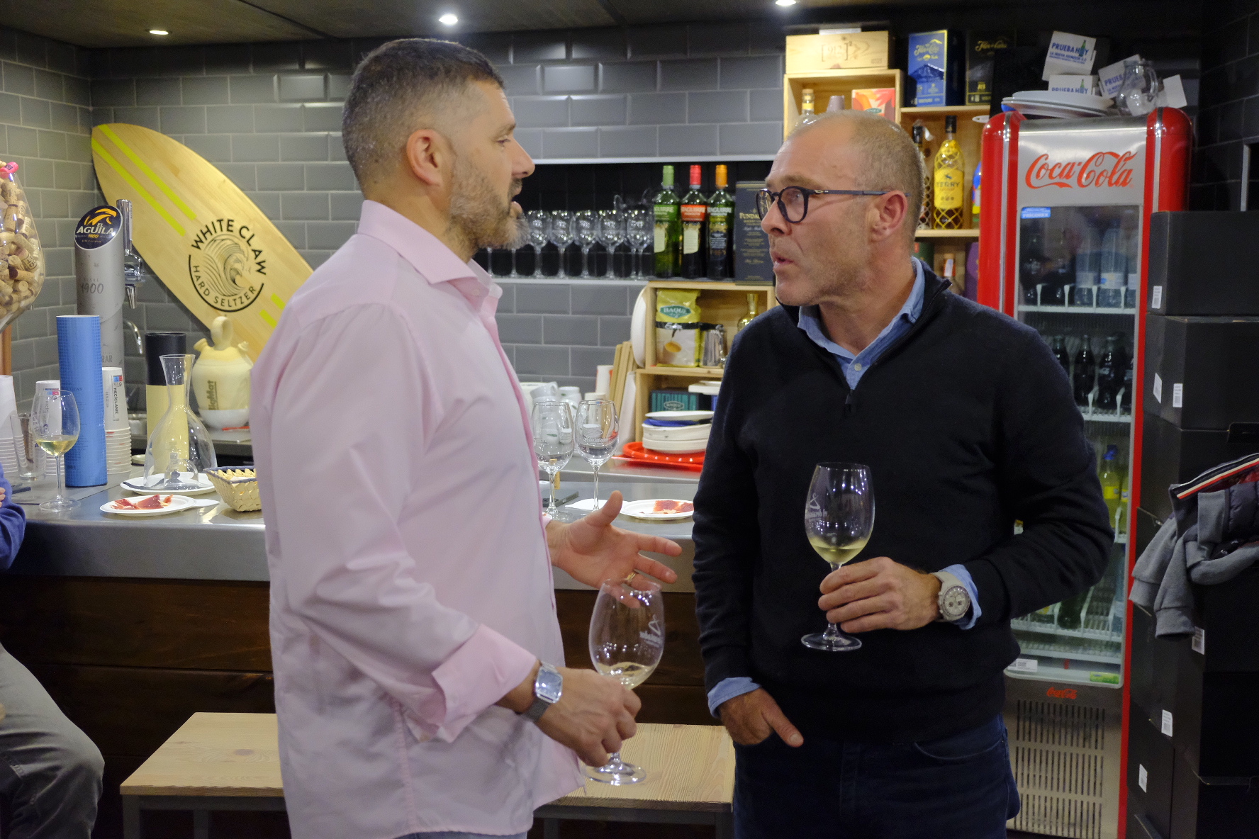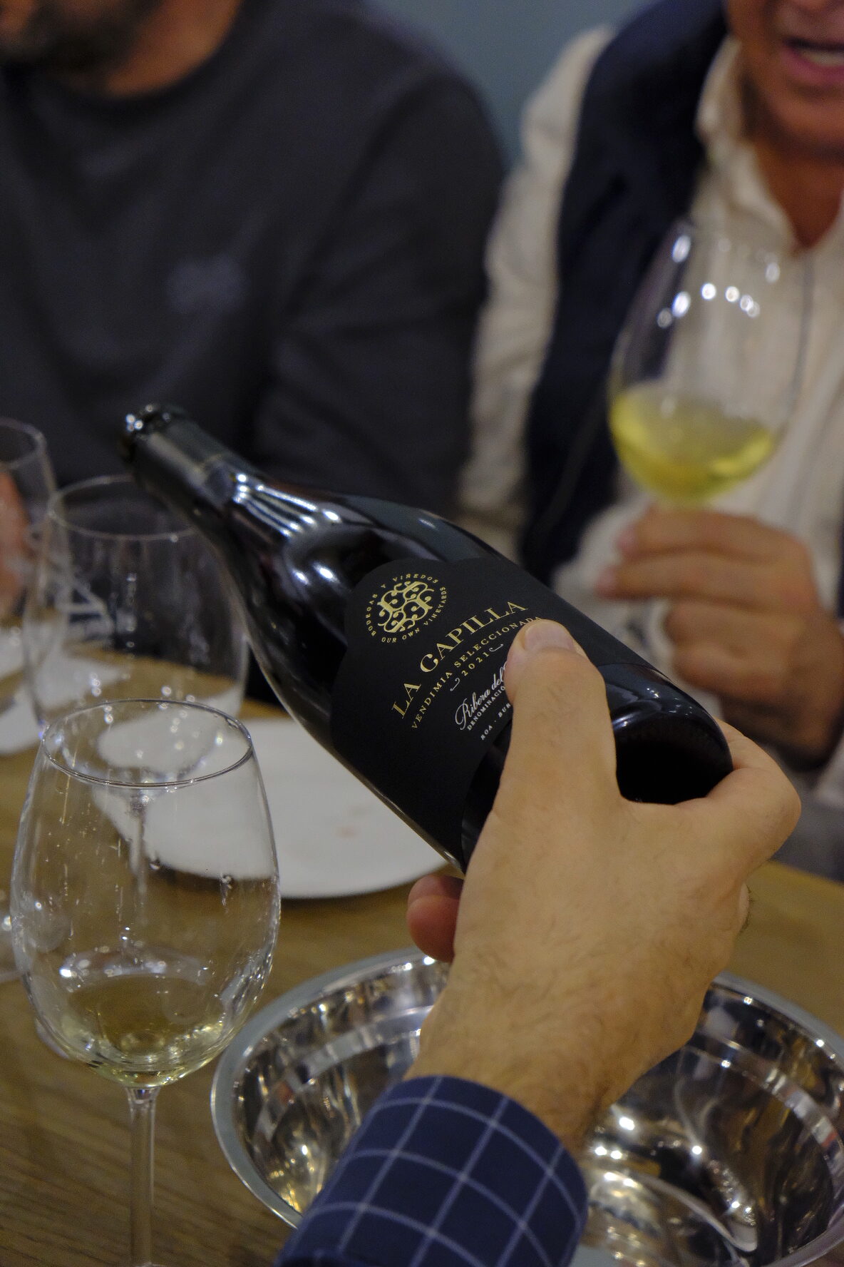 El sumiller Miguel Enzo, del club Diaita, fue el timonel de un viaje enológico y sensorial en el que los asistentes trataban de descubrir los vinos que estaban catando. Jorge Margarito, Chef del restaurante, diseñó tres propuestas que acompañaron a la perfección a los vinos: humus de judiones de La Granja, bacalao al pil pil de percebes y lingote de cochinillo a baja temperatura. Después del juego, los vinos dieron la cara. Un cava Brut Nature de Fica Torremilanos, en Aranda del Duero, Peñalba López; Liberso, curioso verdejo de Rueda y Gran Solorca, una tinta reserva de la Ribera del Duero.