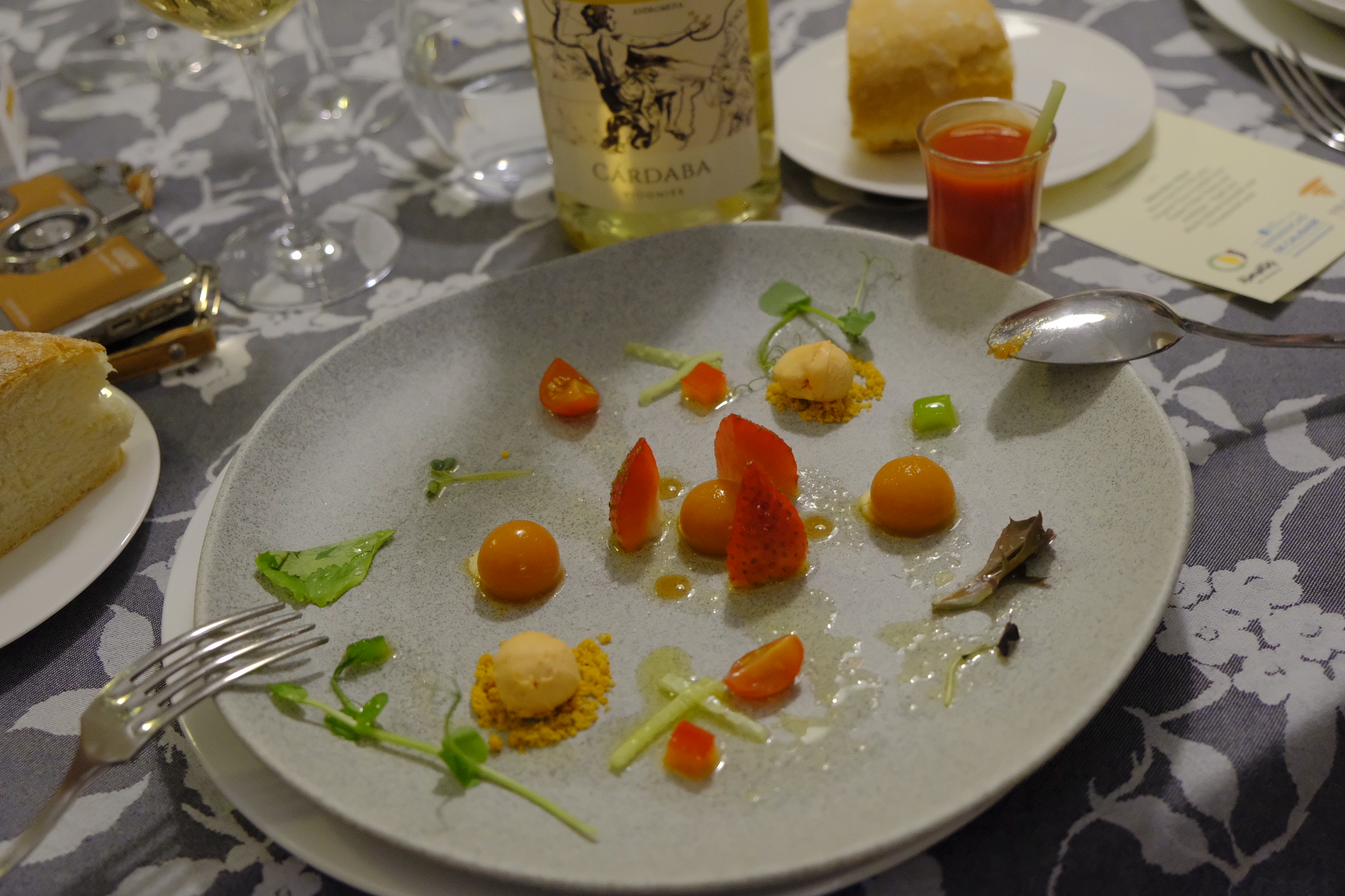 Experiencia Gastronómica Km 0 de Alimentos de Segovia. Menú degustación de 5 pases maridado con una selección de vinos excelentes de bodegas segovianas: Microbio, Finca Cárdaba, Ossian, Jose María Galindo y Severino Sanz; y la música en directo del dúo de guitarras Caracola2. Sorpresa gastronómica y enológica de nuestra invitada: Galicia.