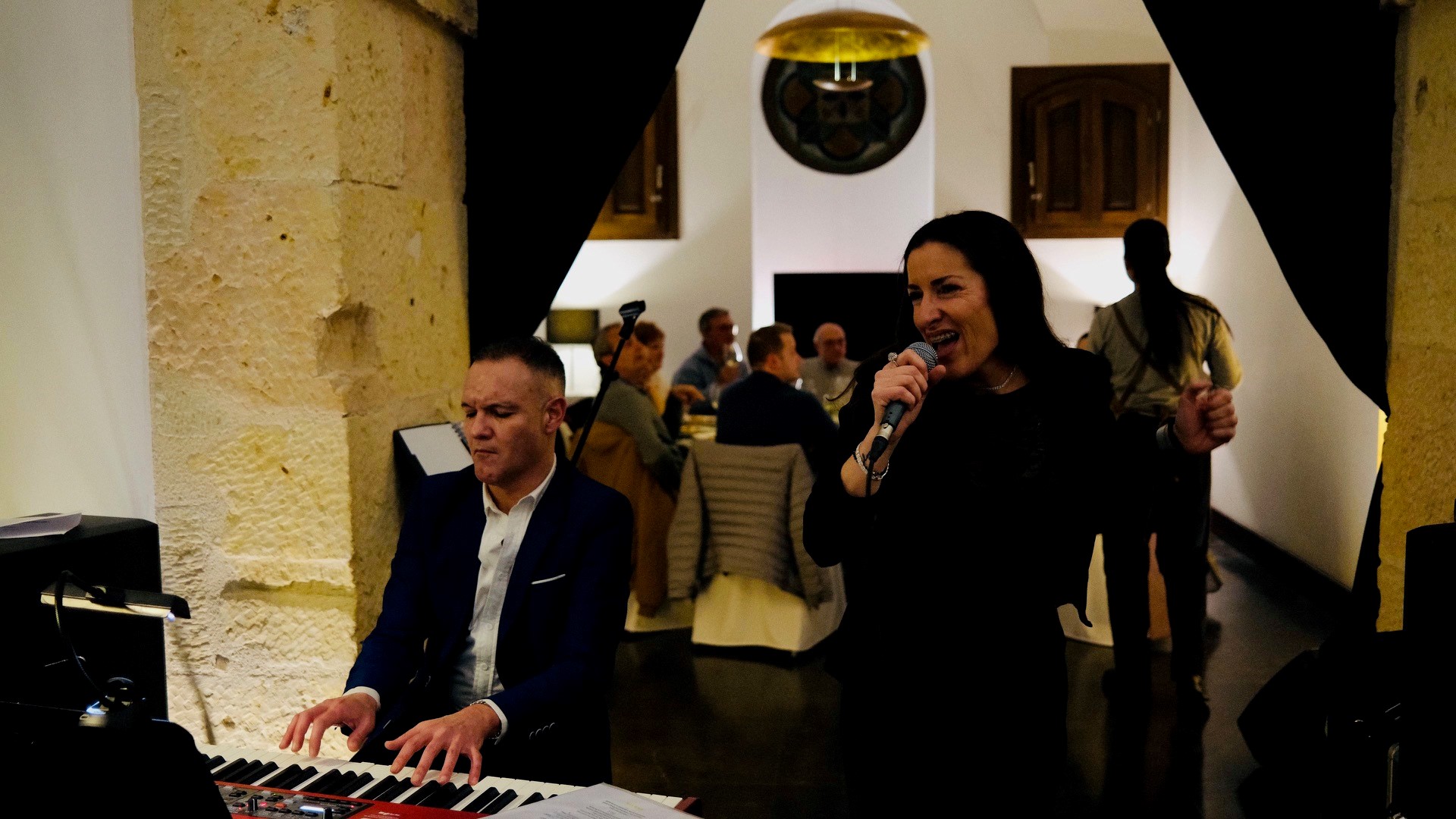 Una noche así, merecía una puesta de largo musical. Henar López Olmos, cantante y sumiller por la Escuela Internacional de Cocina Fernándo Pérez, quien ya puso en marcha en su día el mencionado proyecto Wine Notes en el marco de los “Otoños”, estuvo acompañada en esta ocasión por el pianista Iván San José, juntos HEVÁN, con una propuesta musical delicada y elegante: una preciosa voz que ensamblaba a la perfección con la elegancia y el virtuosismo del maestro Iván San José al piano.