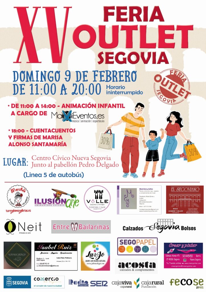 El Centro Cívico de Nueva Segovia será el escenario este próximo domingo, 9 de febrero, de la decimoquinta edición de la Feria Outlet Segovia, una oportunidad única para apoyar al comercio local y dar visibilidad a los negocios con productos de fin de temporada”, según ha destacado Alberto García, presidente de la Asociación Comercio Amigo de Segovia (CAS), organizadora de este evento.