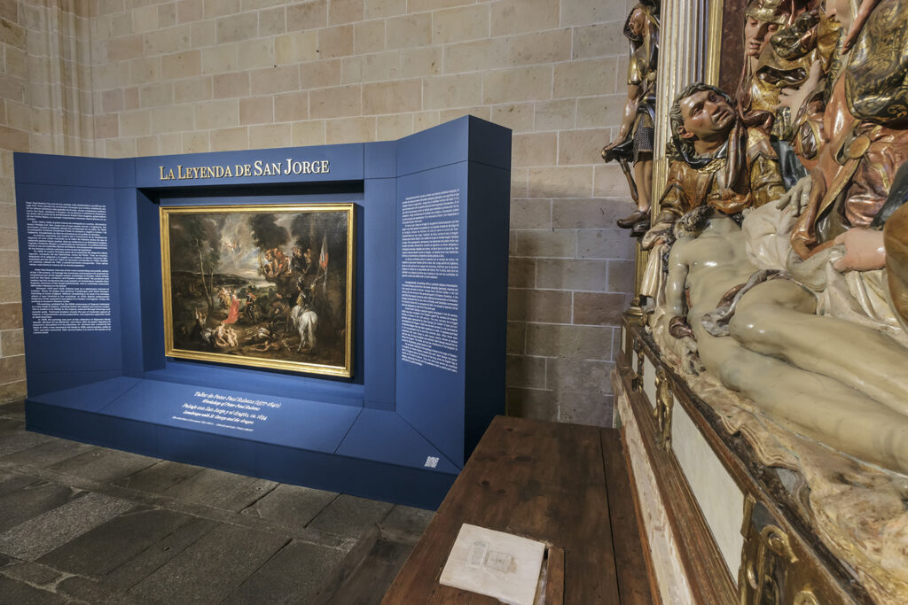 El Cabildo de la Catedral ha trabajado estrechamente durante estos meses con el propietario de la obra y el equipo técnico encargado del diseño del mueble para que se contase con todas las garantías durante su estancia en el templo y una correcta lectura. Previamente, el lienzo de grandes dimensiones que representa la leyenda de San Jorge y el dragón en un amplio paisaje, fue restaurado y sometido a un estudio de laboratorio para profundizar en los materiales empleados y aportar información sobre la procedencia. En relación a su origen, esta pintura está fechada hacia el año 1634 y es una copia de la original, pintada en 1630 por Rubens durante su estancia diplomática en Londres con el propósito de honrar al rey de Inglaterra Carlos I.