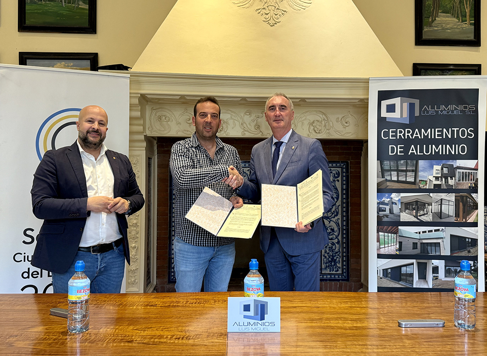 El alcalde de Segovia, José Mazarías, acompañado del concejal de Deportes, Jesús Garrido, ha formalizado con los representantes de Bezoya, Recoletas Salud, la Fundación Caja Rural, Tabladillo, Ginpe, Innoporc y Aluminios Luis Miguel el convenio de colaboración con “Segovia Ciudad Europea del Deporte 2025”. Se convierten así en los primeros mecenas de las actividades deportivas y formativas que se están desarrollando en el ámbito de la designación de Segovia como Ciudad Europea del Deporte.