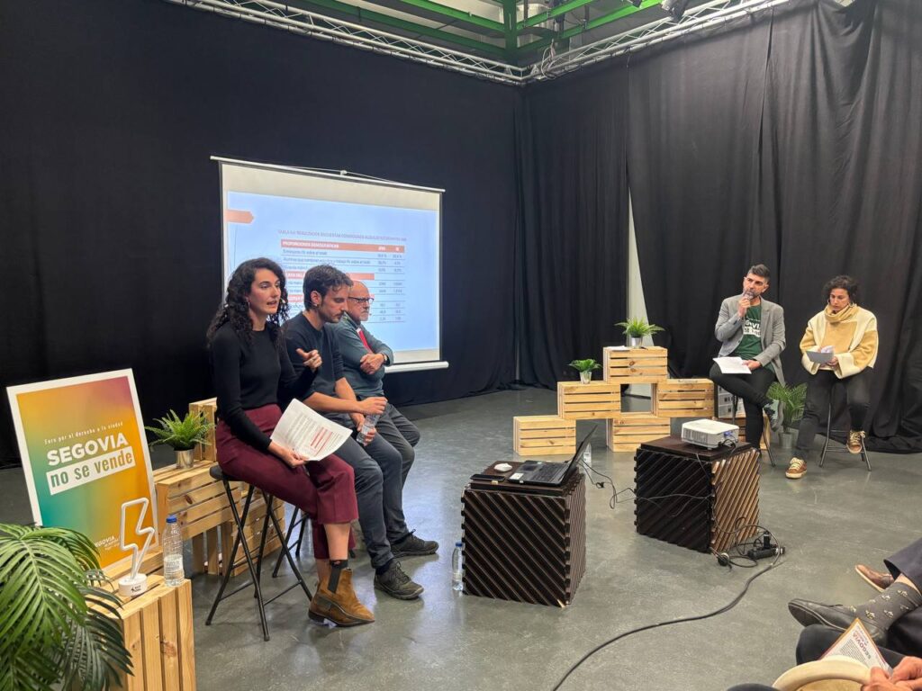 Por ultimo Miguel Garcia-Duch, economista e investigador ha ofrecido una radiografía del rentismo segoviano, calificándolo como una fábrica de desigualdades y un negocio cada vez más lucrativo para los apenas, 1 de cada 10 hogares segovianos, que declaran ingresos procedentes del alquiler de viviendas a costa de la población inquilina. De hecho, solo en cinco años el volumen del negocio del alquiler ha crecido más de 40 puntos porcentuales. Todo esto en una ciudad donde 3 de cada 10 segovianos viven en una vivienda cedida o alquilada y donde el porcentaje de hogares que viven de alquiler es similar a la de las grandes ciudades y cuatro puntos por encima de la media nacional y casi el doble que la media del resto de la comunidad autónoma.