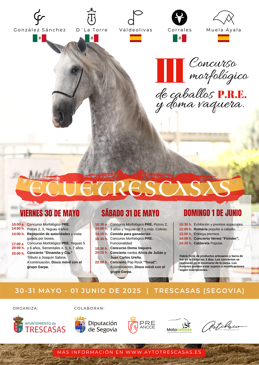 - 10:30 a 14:00 h. Concurso Morfológico PRE: potros de 2 y 3 años, y yeguas de 7 o más. Cobras.