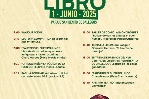 El próximo domingo 1 de junio, junto a la ermita de San Benito de Gallegos, se celebrará una jornada cultural y lúdica en torno al libro, que será también un espacio de encuentro y convivencia para vecinos y amigos. Instaladas desde primera hora las casetas de los libreros, la XVIII edición de la Feria del…