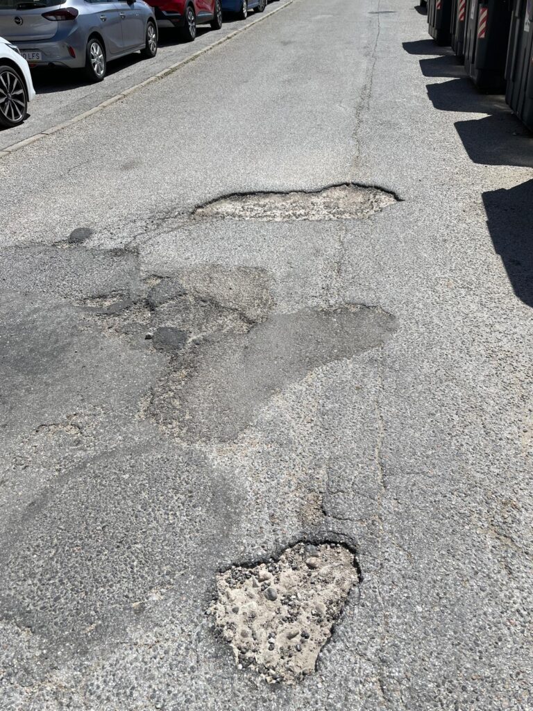 Este es el aspecto y estado de la calle Clavel, en el barrio de Santo Tomás, el deplorable estado de la calzada, y en el que la inacción y la dejadez se ponen en evidencia.