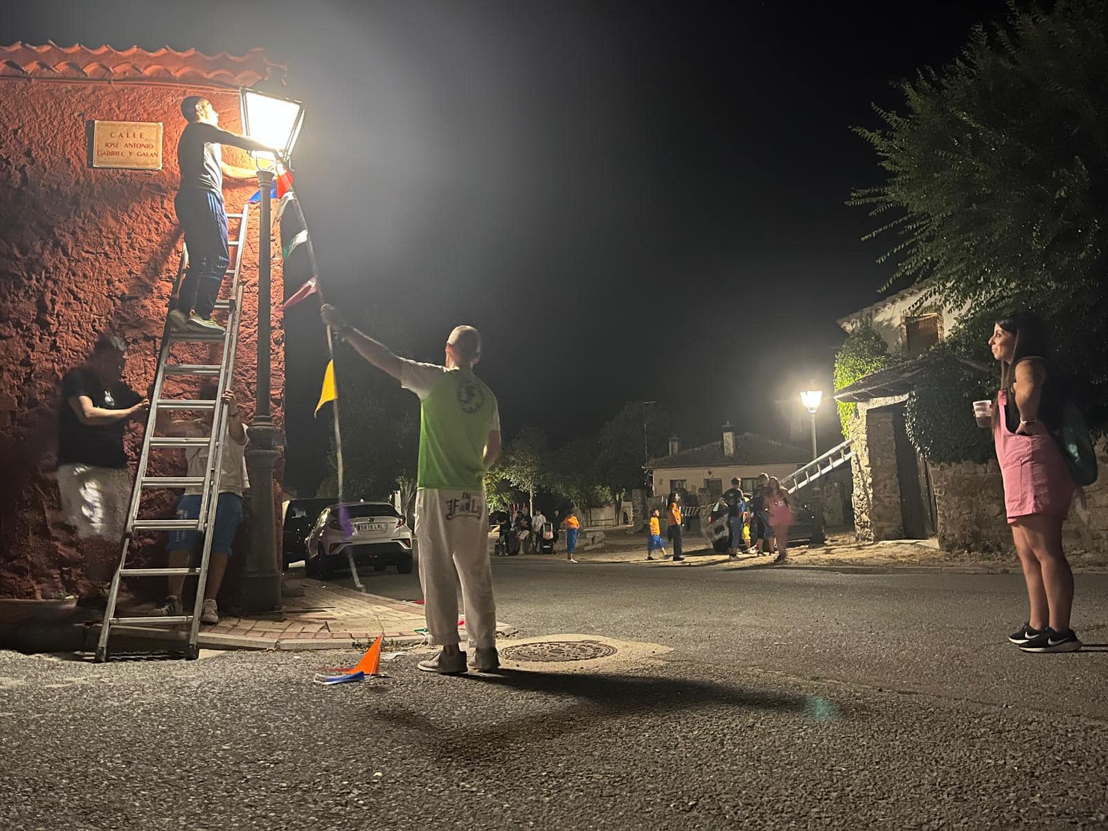 00:00 h. Puesta de banderines por las calles del pueblo comenzando por La Aldehuela.