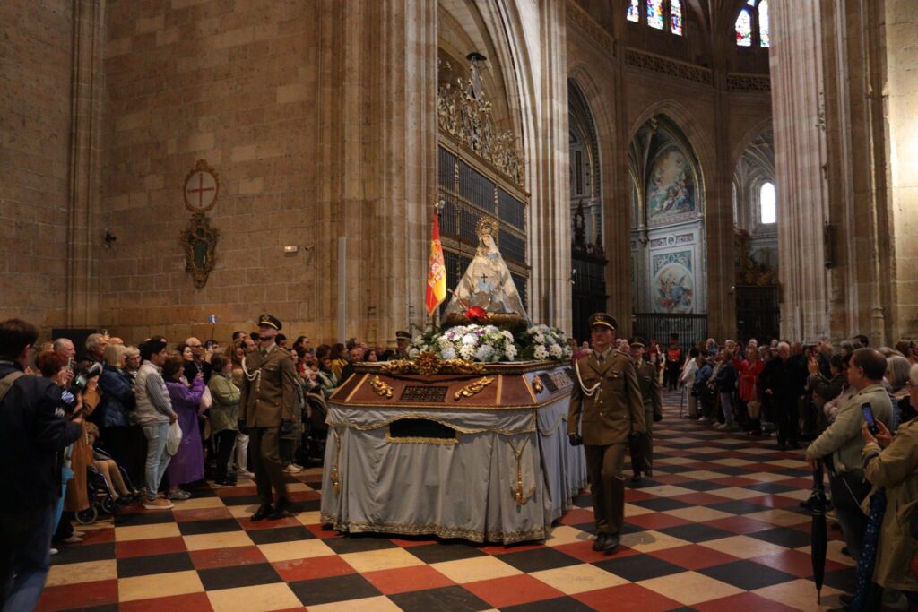 La despedida ha concluido con el canto de la Salve y el traslado de la Sagrada Imagen en coche, haciendo la parada ya prevista en el barrio de San Lorenzo, donde los devotos de la Virgen han podido rezar ante ella en este camino excepcional, lamentando no poder haberlo hecho según lo planeado. Finalmente, La Fuencisla ha llegado a su santuario, donde permanecerá hasta su regreso a la Catedral dentro de un año.