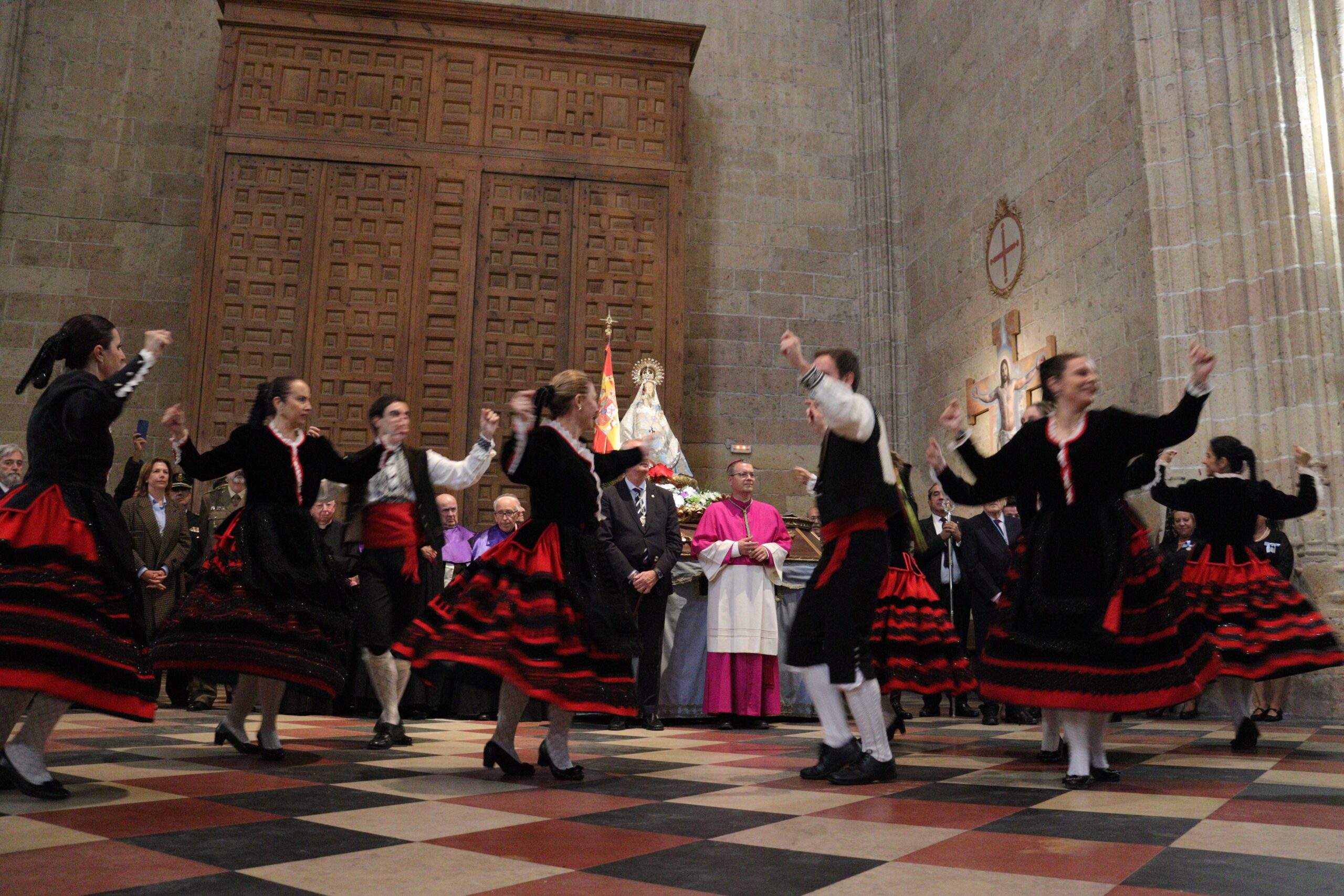 Allí ha recibido los honores de los Alumnos de la Academia de Artillería, y los del grupo de coros y danzas «Emperador Teodosio.» A continuación, Mons. Vidal le ha dirigido unas palabras de despedida cargadas de fe y gratitud, recordando a los desplazados por el incendio de Guadalajara que ha traspasado al nordeste de nuestra provincia:
