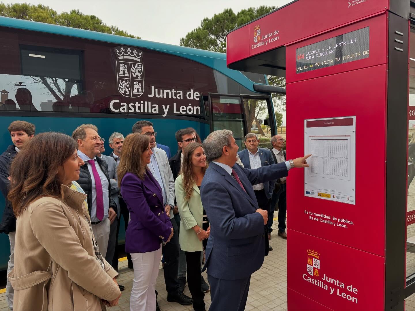 El despliegue de la tecnología en este nuevo sistema de movilidad en Castilla y León continúa con la instalación de 120 marquesinas inteligentes. El consejero de Movilidad y Transformación Digital, José Luis Sanz Merino, ha visualizado este nuevo sistema en La Lastrilla (Segovia), que “simbolizando el paso decisivo hacia la digitalización completa del transporte de viajeros de titularidad autonómica”.