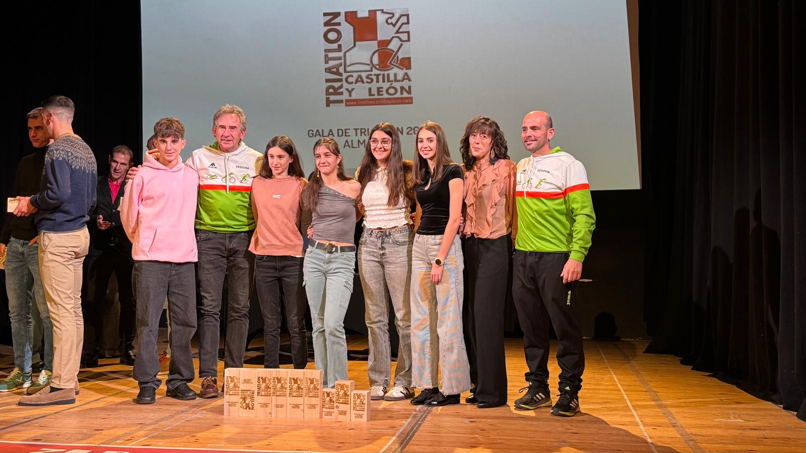El Teatro Calderón de Almazán ha acogido la Gala Regional de la Federación de Triatlón y Pentatlón Moderno de Castilla y León. Una jornada muy emotiva, con el homenaje al soriano Rubén Andrés García, por su trayectoria en este deporte, desde su faceta de deportista, con un octavo puesto en un Campeonato del Mundo de Duatlón de Larga Distancia, pasando por su rol como técnico, juez, directivo y organizador, entre otros aspectos. Del mismo modo, especialmente cariñoso fue el público con los triatletas internacionales de Castilla y León, Marina Muñoz, Alba Núñez y Amanda García. Así como con los ganadores de los ranking autonómicos, los clubes campeones de la Liga regional y la mejor Escuela de Triatlón. Entre los premiados, un buen número de corredores locales, y un reconocimiento muy local para las instituciones y entidades que desarrollan este deporte en la provincia soriana.