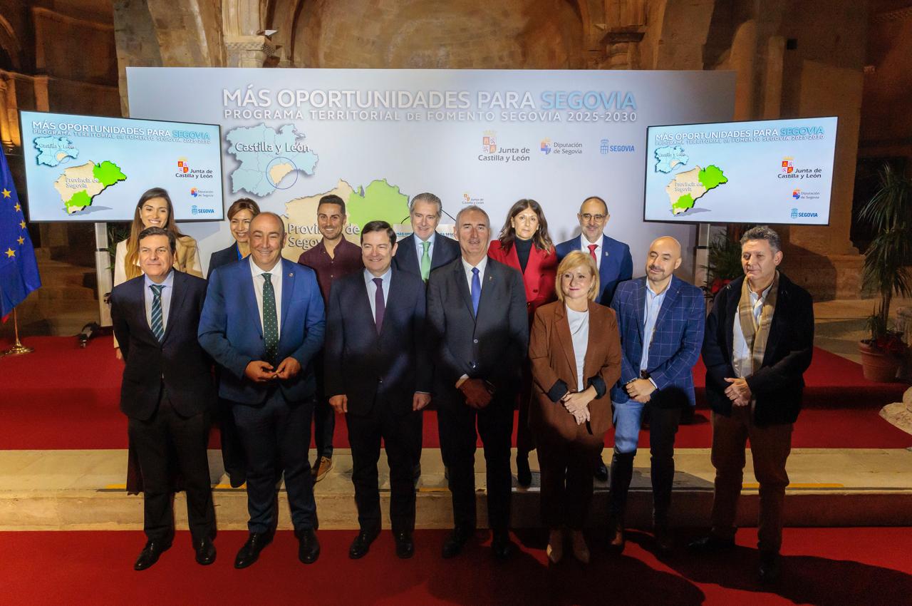 El presidente de la Junta de Castilla y León, Alfonso Fernández Mañueco, ha presentado el ‘Programa Territorial de Fomento para Segovia 2025-2030’ que abarca 85 municipios distribuidos en dos áreas de actuación. Se trata del más amplio de los programas territoriales de carácter uniprovincial aprobados hasta el momento, y actúa sobre más del 40 % de los municipios de la provincia y más del 60 % de la población.