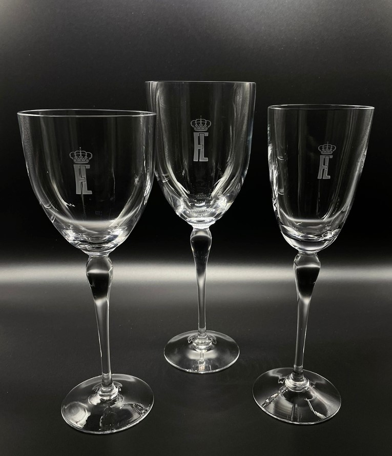 La cristalería, concebida como un conjunto de uso protocolario y representativo para Sus Majestades los Reyes, se elabora íntegramente en los hornos y talleres históricos de la Real Fábrica, siguiendo un proceso artesanal completamente manual. Cada pieza responde a los diseños y especificaciones definidos por Patrimonio Nacional y refleja la excelencia técnica que ha caracterizado a esta institución desde su fundación hace más de tres siglos.