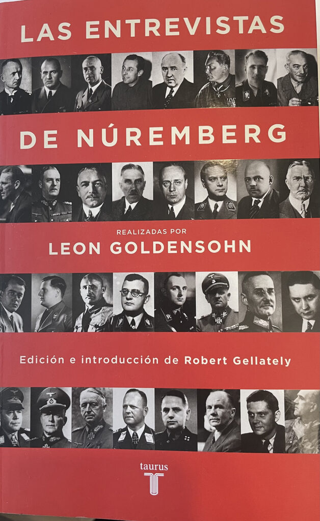 Hoy les voy a hablar de un libro que me ha parecido extraordinario, un volumen de casi 600 páginas titulado “Las entrevistas de Nuremberg” del estadounidense Leon Goldensohn, un médico y psiquiatra del ejército americano que fue enviado en enero de 1946 a la prisión donde estaban encarcelados los nazis que fueron juzgados en Nuremberg. El libro básicamente contiene las entrevistas con los prisioneros por separado, como si fueran fichas de cada uno de ellos.